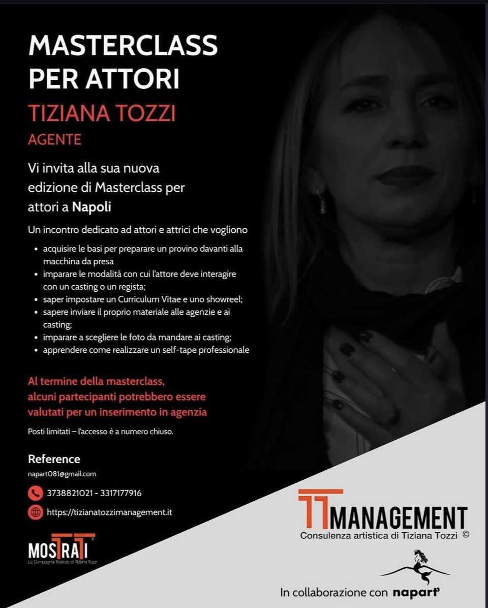 Per Info e prenotazioni scrivere a info@tizianatozzimanagement.it